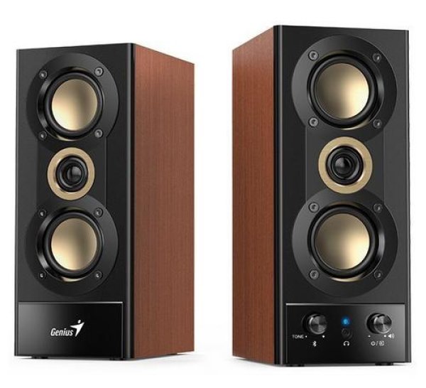 GENIUS repro SP-HF800BT 2.0, 20W, 3,5mm jack, Bluetooth 5.3, USB, dřevěné, černo-hněd