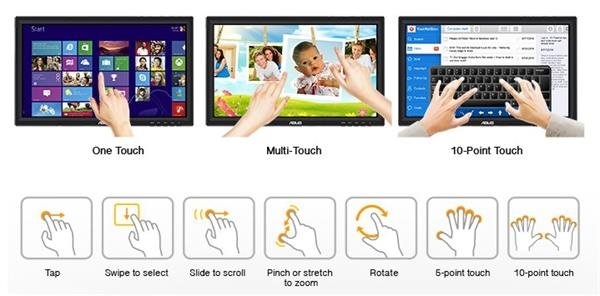 ASUS VT169HE Displej: Velikost panelu (v palcích) : 15.6 Poměr stran: 16:9 Zobrazovací plocha (V x V) : 344,16 x 193,59 mm Povrch displeje : neoslňující Typ podsvícení : LED Typ panelu : IPS Pozorovací úhel (CR?10, H/V) : 170°/ 170° Rozteč pixelů: 0,179 mm Rozlišení: 1920x1080 Jas (typ): 220 cd/? Kontrastní poměr (typ.): 1000:1 Barvy displeje: 262K Doba odezvy: 5 ms (GTG) Obnovovací frekvence (max.) : 60 Hz Dotyk : Ano, projekční kapacitní 10bodový dotyk Flicker-free : Ano Feature: Technologie Trace Free : Ano Technologie SPLENDID : Ano Barevná teplota. Výběr: Ano (4 režimy) GamePlus : Ano QuickFit : Ano HDCP : Ano, 1.4 DisplayWidget : Ano, DisplayWidget Center Low Blue Light : Ano Technologie Eye Care+ : Ano Audio: Reproduktory - ne Vstupy a výstupy: HDMI(v1.4) x 1 VGA x 1 Spotřeba energie: Spotřeba energie: 7,38 W Režim úspory energie : <0.5W Režim vypnutí napájení : <0.3W Napětí: 100-240 V, 50/60 Hz Mechanický design: Náklon: Ano (+30° ~ -5°) Nastavení výšky : Ne Montáž na stěnu VESA : 75x75 mm Zámek Kensington : Ano Odkaz na oficiální web: https://www.asus.com/displays-desktops/monitors/touch/vt169he/