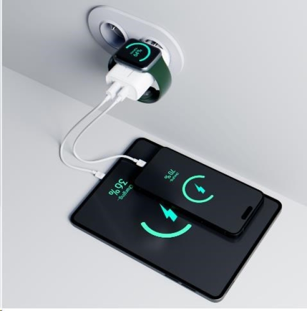 Vaše Apple Watch se právě vybily? Začíná se vybíjet i váš smartphone? Naštěstí máte rychlonabíječku HARDY Charger PD 2 v 1 33W™ s více porty. Můžete nabíjet dvě nebo dokonce tři zařízení najednou, bezdrátově pro vaše Apple Watch a kabelově například pro váš iPhone a jakýkoli jiný telefon. Nabíječka vám navíc dává možnost nabíjet jak Apple Watch, tak iPhone na maximální výkon, takže doslova po chvilce znovu získáte plnou mobilitu. Nabíječka je kompatibilní s Apple Watch a smartphony všech značek. Jedno řešení vám umožní nabíjet všechny vaše mobilní gadgety.