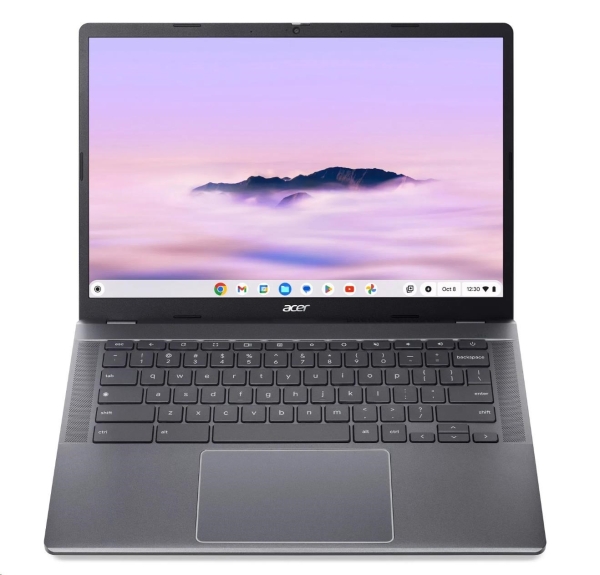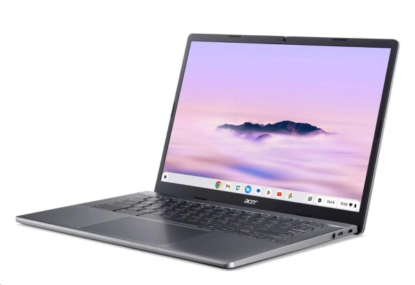Acer Chromebook Plus 514 (CB514-5HT-503H) * TPM H1 čip * armádní standard MIL-STD 810H * umělá inteligence Gemini Operační systém: Google Chrome Core Procesor: Intel Core 5 120U (10 jader - 2P + 8E, 12 vláken, P-core 1,4/5,0 GHz, E-core 0,9/3,8 GHz, 12 MB cache) Paměť: 16GB LPDDR5-5200 na desce Pevný disk: 256GB PCIe NVMe SSD PM4 Optická mechanika: ne Čtečka paměťových karet: ne Displej: dotykový 14'' WUXGA (1920x1200) 16:10 antireflexní IPS, 300 nitů Grafická karta: Integrovaná Intel Iris (v režimu Intel UHD) Audio: DTS® Audio, 2x mikrofon Web kamera: FHD USB TNR (1080p) Čtečka otisku prstů: ne Polohovací zařízení: OceanGlass™ Touchpad Klávesnice: podsvícená, bez numerického bloku Síť: ne Bezdrátová komunikace: WLAN + Bluetooth (WIFI 6E Intel 802.11ax 2x2 MIMO + BT 5.3) Porty USB: * 2x USB 3.2 Gen1 * 2x USB-C podpora: USB typ C 3.2 Gen2 (až 10Gb/s/DisplayPort přes USB-C/USB nabíjení 5/12/19V, 3A/DC-in 12/19V, 65W) Další porty: * 1x HDMI 1.4 * 1x kombinovaný konektor pro sluchátka/mikrofon (3,5mm) * 1x bezpečnostní slot Kensington Baterie: 53Wh Li-ion, 3článková Napájení: 65W USB-C AC adaptér Barva: šedá (Steel Gray) Rozměry: 316,4x226,5x18,35mm Hmotnost: 1,55kg Záruka: 2 roky