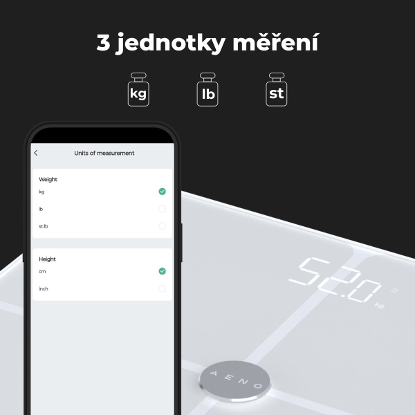Flexibilita je v dnešním globálním světě klíčová. Naše váhy nabízejí tři převody jednotek - kilogramy, libry a kameny - a umožňují vám tak zvolit si systém měření, který vám nejlépe vyhovuje. Tato funkce je užitečná zejména pro ty, kteří často cestují nebo preferují konkrétní měrnou jednotku.