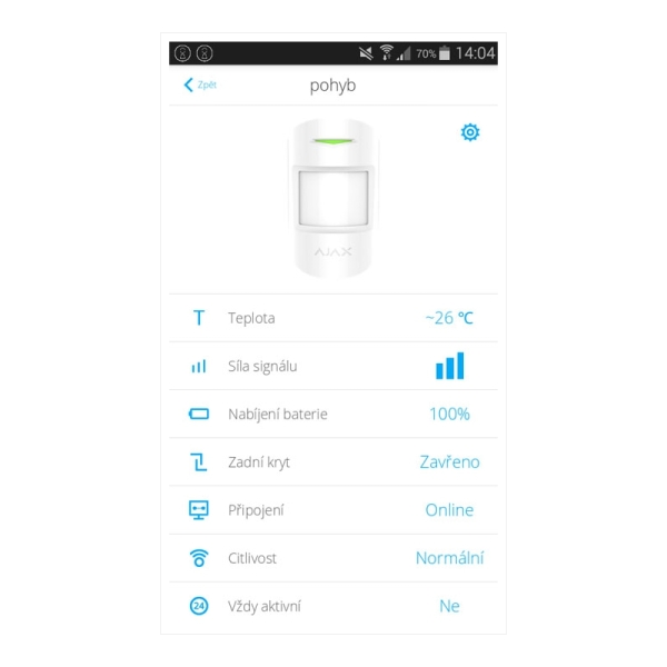 Detekční zóny a kvalitu připojení je možné vzdáleně otestovat prostřednictvím mobilní aplikace.
