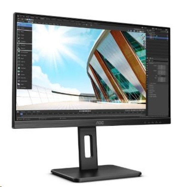 AOC LCD 24in monitor 24P2Q IPS, 23,8" IPS, 1920x1080@75Hz, 4ms, 250cd/50mil:1, VGA, DVI, HDMI, DP, 4xUSB, pivot, repro, VESA, bezrámečkový design