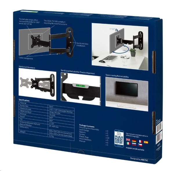 ARCTIC W1C - Držák na stěnu se zasouvatelným sklopným ramenem