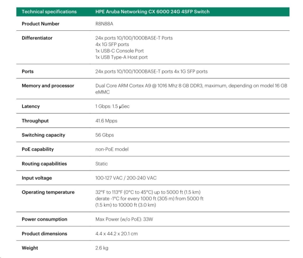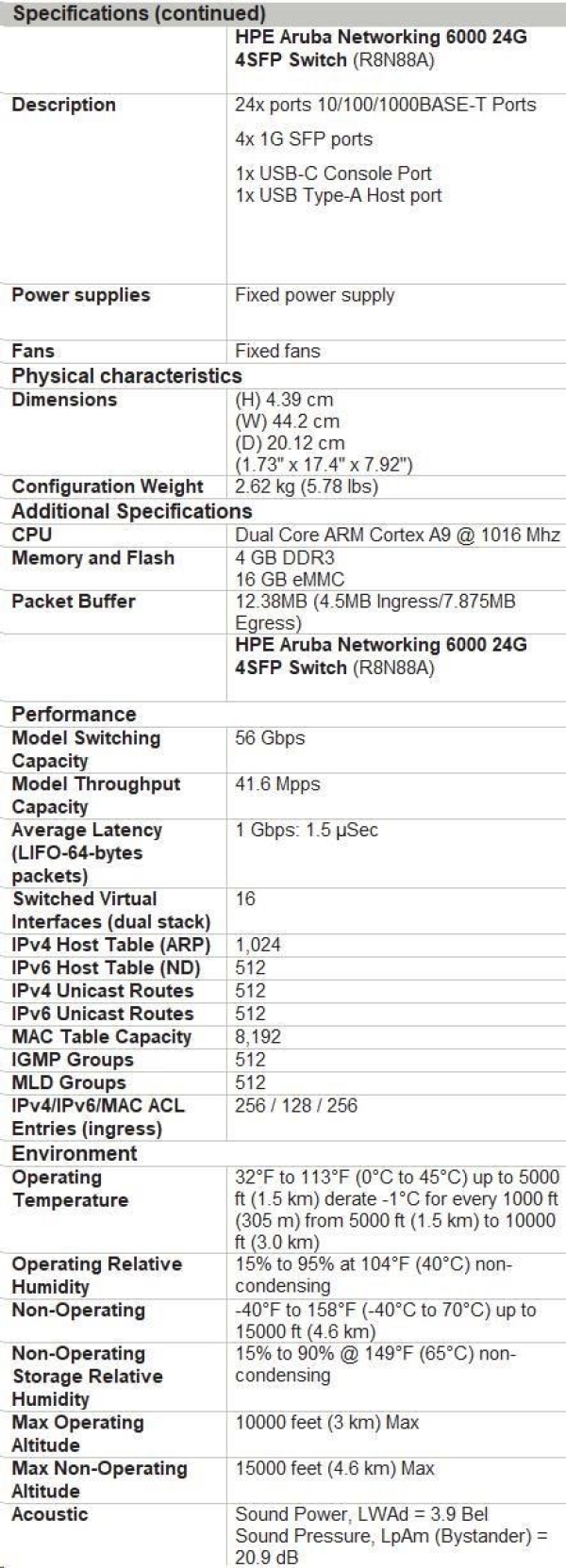 Aruba 6000 24G 4SFP Switch (R8N88A) |
