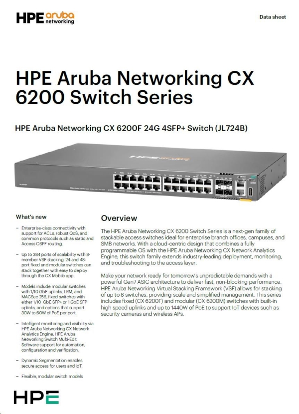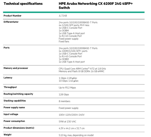 Aruba 6200F 24G 4SFP+ Switch JL724A RENEW