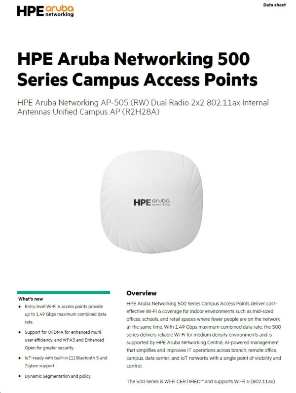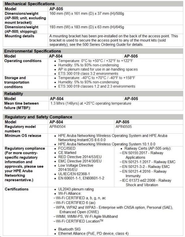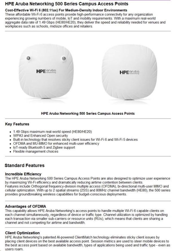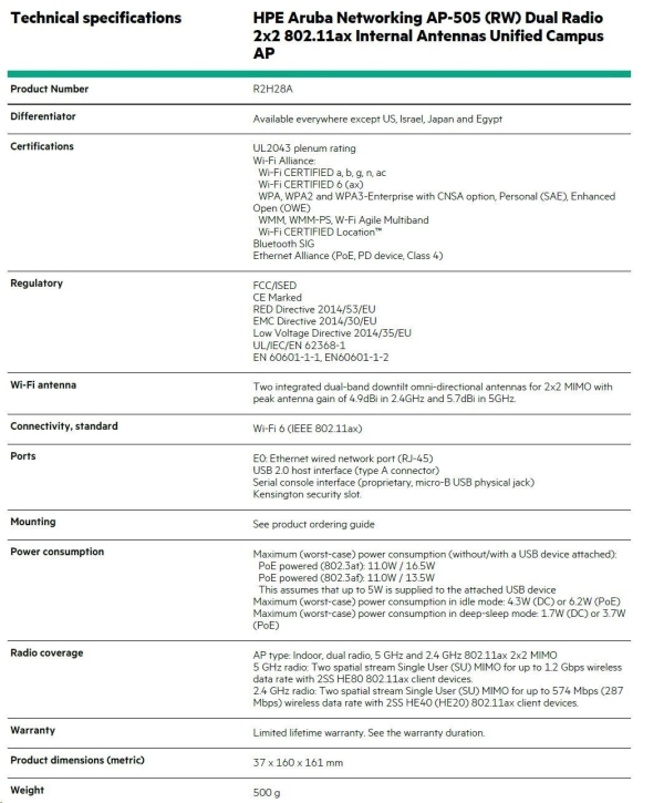 Link to the manufacturer's website: https://www.arubanetworks.com/assets/ds/DS_AP500Series.pdf