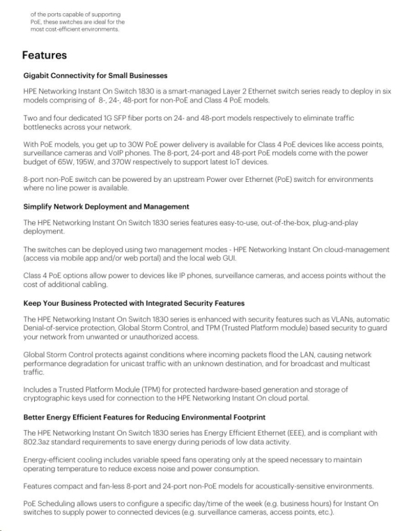 Aruba Instant On 1830 24G 12p Class4 PoE 2SFP 195W Switch (JL813A) |