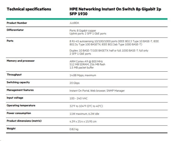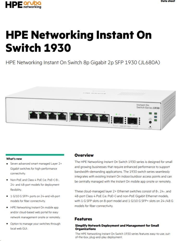 | JL680A - Aruba Instant On 1930 8G 2SFP Switch | |