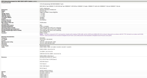 (IEEE 802.3u Type 100BASE-TX, IEEE 802.3ab Type 1000BASE-T, IEEE 802.an 10GBASE-T); Duplex: 100BASE-TX: half or full; 1000BASE-T: full only 10GBASE-T: full only