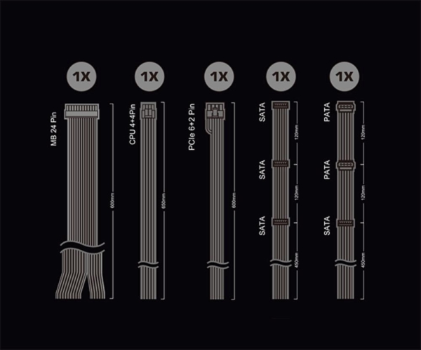 SATA Konektor4x / 1x (450mm + 120mm + 120mm) + 1x (450mm + 120mm Molex + 120mm Molex)