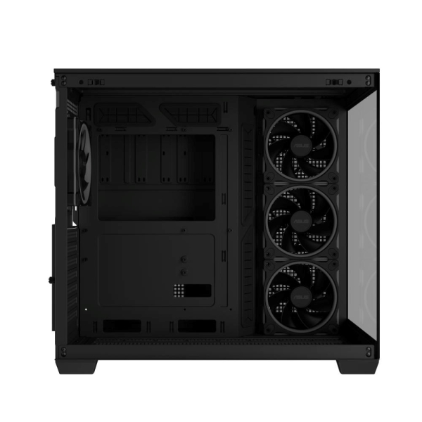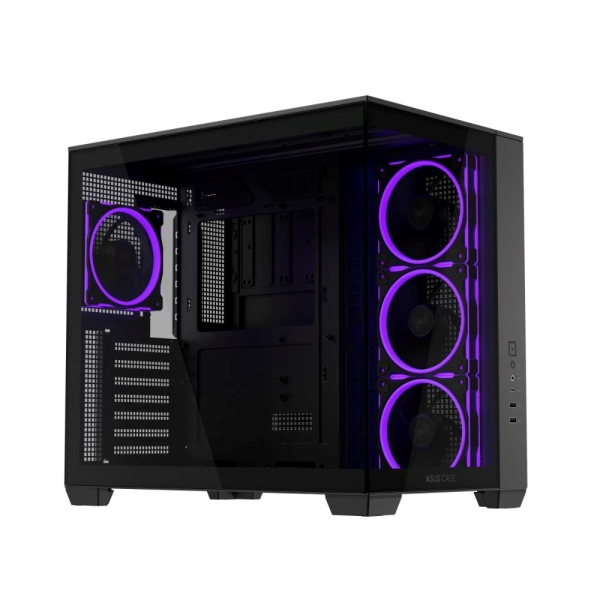 Skrinka ASUS A32 PLUS ATX ponúka podporu pre 360mm radiátory a 420mm grafické karty v čiernej alebo bielej farbe, so štyrmi predinštalovanými ARGB ventilátormi a prehľadným vedením káblov.