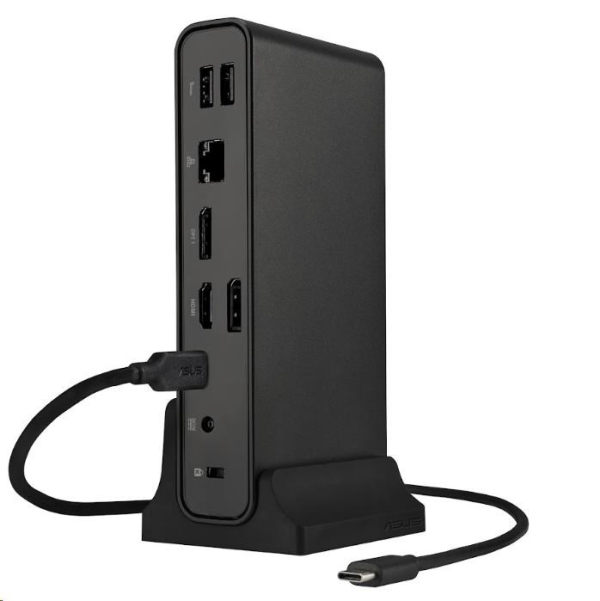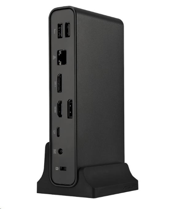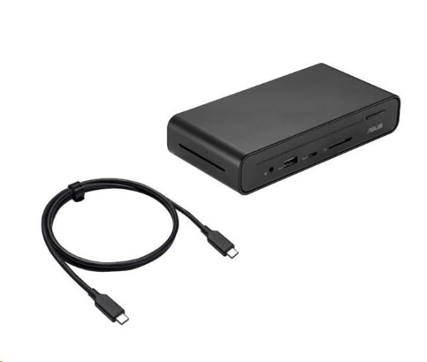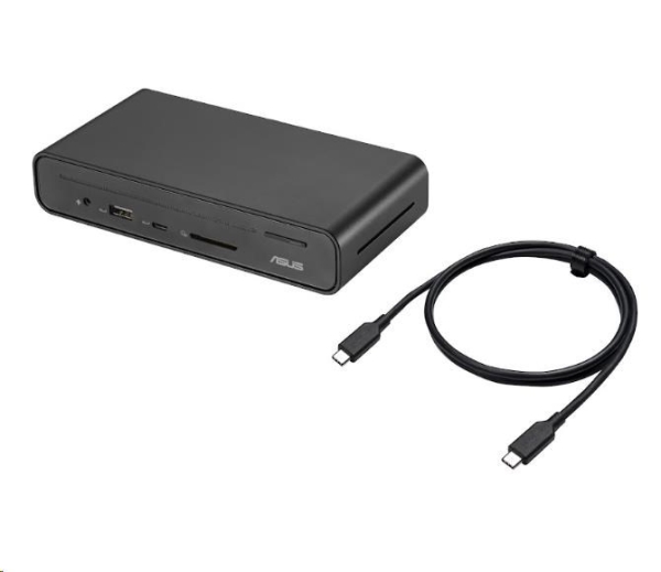 ASUS Triple Display USB-C Dock Duo DC301 - Kouzlo kompaktní produktivity ASUS Triple Display USB-C Dock Duo DC301 je elegantní a kompaktní zařízení, které zefektivňuje připojení k notebooku. Napájejte notebook prostřednictvím jediného kabelu, připojte se k síti a periferním zařízením a pracujte na více úlohách s až čtyřmi monitory1 – včetně obrazovky notebooku a tří externích monitorů. Navíc disponuje integrovanou čtečkou SD karet pro nejrůznější firemní scénáře. Jednoduše řečeno, díky dokovací stanici ASUS Triple Display USB-C Dock Duo DC301 bude váš pracovní stůl čistý, uklizený a přehledný a zároveň se v mžiku připravíte na práci. Konektory: *RJ-45 (Gigabit): 1× *USB 3.2 Gen1 Type-A (5 Gb/s): 2× *USB 3.2 Gen2 Type-A (10 Gb/s, 5,0 V / 2,4 A): 1× *USB 3.2 Gen2 Type-C (10 Gb/s, 5,0 V / 3,0 A): 1× *USB 3.2 Gen2 Type-C (pouze DP 1.4): 1× *HDMI 2.0: 1× *DisplayPort 1.4: 2× *Kombinovaný 3,5mm audio konektor: 1× *Čtečka SD karet: 1× *Zámek Kensington: 1× *Zapínací tlačítko s LED indikátorem: 1× *DC konektor (4,5 mm): 1× Rozlišení videa: *HDMI (jediný externí výstup): 3840 × 2160 @ 60 Hz *DisplayPort (jediný externí výstup): 3840 × 2160 @ 60 Hz Podpora OS: *Windows 10 nebo novější *Mac OS 13 nebo novější Napájecí adaptér: *150 W (DC 20,0 V / 7,5 A) Bezpečnost: *Zámek Kensington Délka kabelu: *100 cm Barva: *Černá Hmotnost: *Dok: 514 g ± 5 g *Stojan: 95 g ± 5 g Rozměry: *160 × 80 × 32 mm Materiál: *Plast, kov Obsah balení: *ASUS Triple Display USB-C Dock Duo *1m kabel USB-C *Dokovací stojan *150W adaptér *Napájecí kabel *Uživatelská příručka *Záruční list Zapínací tlačítko: *Pro řadu ExpertBook B: ovládání pomocí jediného tlačítka – probuzení notebooku s více monitory z pohotovostního režimu *Pro ostatní notebooky se systémem Windows (ASUS i jiné): zapnutí/vypnutí LED a aktivace/deaktivace signálu na displeji DC300