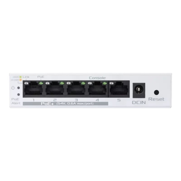 5portový GbE chytře spravovaný přepínač PoE+, 4 porty PoE+, 60 W, podporuje nastavení priority PoE, ideální pro PoE AP, IP kamery, VoIP telefony, centralizovaná správa aplikací s routerem ExpertWiFi