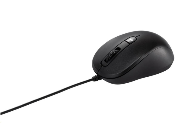 Kabelová myš MU101C s blue ray senzorem je ideální pro použití v tichém prostředí, tichý mikrospínač vám umožní zcela tichý provoz (pouze kolem 20dB), takže se už nemusíte obávat o rušení vašeho okolí. Větší koncentrace, větší efektivita. Okamžitý přepínač DPI (1000/1600/2400/3200) a snadno ovladatelné rolovací tlačítko pro přesné ovládání. Senzor přesně detekuje pohyb na různých površích, včetně dřeva, plastu, tkaniny a podobně. Její pohodlný oboustranný tvar je vhodný jak pro leváky, tak pro praváky. Kabel 1500 mm poskytuje flexibilní použití pro všechny scénáře využití. MU101C je skvělou volbou pro práci i hraní. *Tichý mikrospínač – nízký šum. Žádné další starosti o nepříjemné rušení vašeho okolí. *Symetrický tvar je pohodlný, ať už pro pravou nebo levou ruku. *Vysoké rozlišení ovládání nikdy nepřehlédne jediný bod, předchází zpoždění a chybám v detekci během vaší práce *Rolovací tlačítko *Neklouzavý design a přesné ovládání *Přepínač DPI 1000/1600/2400/3200dpi (výchozí 1600) Technické parametry *Rozhraní: USB *Délka kabelu: 150 cm *Sledování: Optické *Rozměry: 96,6 x 57,7 x 38,0 mm *Hmotnost: 85 g *Barva: Černá *Rozlišení: 3200 dpi