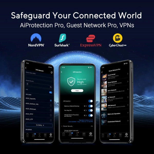 RT-BE86U se může pochlubit dvoupásmovou technologií WiFi 7, která dosahuje bleskové rychlosti až 6800 Mb/s a zajišťuje bezproblémové streamování, hraní her a provádění datově náročných úloh. Ať už sledujete své oblíbené pořady, nebo spolupracujete na virtuální schůzce, tento router vám to umožní.