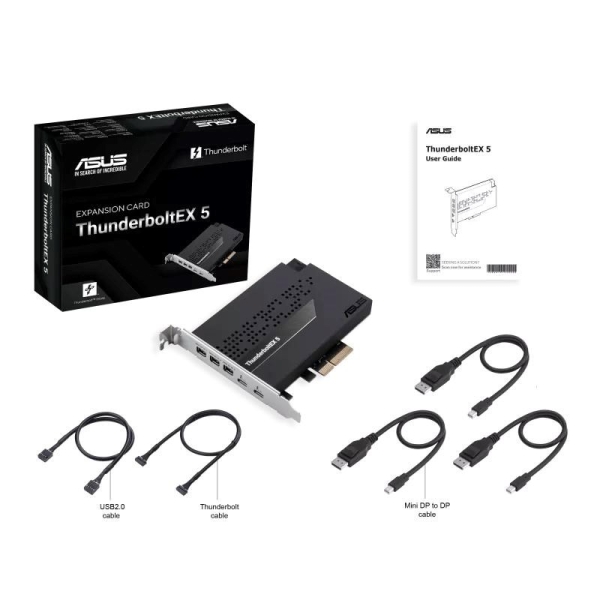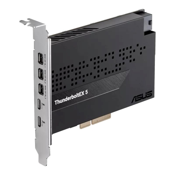 rozšiřující karta ASUS ThunderboltEX 5 přídavná karta Thunderbolt™ 5 s certifikací Intel® Karta ASUS ThunderboltEX 5 nabízí šířku pásma až 120 Gb/s Thunderbolt™ 5, podporu DisplayPort™ 2.1 s kompatibilním GPU, kompatibilitu s USB4® a navíc podporu až pěti zařízení Thunderbolt™. * bezproblémové sdílení mezi dvěma počítači pomocí Thunderbolt™ Share * rozhraní PCIe 4.0 x 4 * 6pinový napájecí konektor PCIe pro funkci Flexible FastCharge * podpora až 3x 8K@60Hz s DSC podle specifikace DisplayPort 2.1 Čipset: Intel® JHL9580 Thunderbolt 5 Externí porty: * 2x USB typ C® – až 120 Gb/s pro zařízení Thunderbolt™ a USB4® – podpora 1x USB typ C® a 1x USB typ C® až celkem 130 W s Flexibilní funkce FastCharge – výstupní napájení USB typ C®: max. 20V/4,8A * 3x mini DisplayPort IN * 1x 6kolíkový napájecí konektor PCIe pro flexibilní funkci FastCharge * 1x USB 2.0 header * 1x Thunderbolt™ header Rozhraní: PCIe 4.0 x4 Rozměry: 119,5x88,9mm Příslušenství: * 1x kabel Thunderbolt * 1x kabel USB 2.0 * 3x kabel miniDP na DP * 1x uživatelská příručka Odkaz na stránku výrobce: https://www.asus.com/motherboards-components/motherboards/accessories/thunderboltex-5/