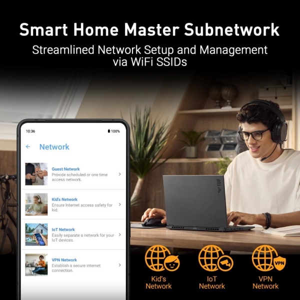 - 4K-QAM & Multi-Link Operation – WiFi 7 dvoupásmový router poskytuje rychlost až 6500 Mb/s. 4096-QAM zvyšuje rychlost 1,2X a Multi-Link Operation (MLO) zvyšuje stabilitu a efektivitu připojením více pásem současně.