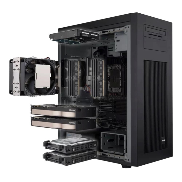 Výkonná pracovní stanice s procesorem Intel Xeon W-3400 / W-2400, pamětí ECC, duální 2,5 Gb LAN, duální M.2, až dvě dvouslotové grafické karty, USB 3.2 20 Gb/s typu C a ASUS Control Center Express.