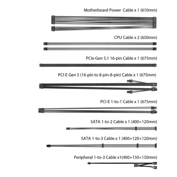 PCIe 6+2pin Konektor3x / 1x (675mm) + 1x (PCIe 16-pin na 2x 8-pin)