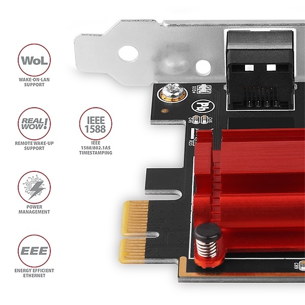 Karta je osazena čipem RTL8125B společnosti Realtek zaručující bezproblémovou kompatibilitu s naprostou většinou síťových operačních systémů. LAN adaptér podporuje bootování po síti (PXE) a také Realtek Dragon Software pro správu nastavení a automatické ovládání šířky pásma.