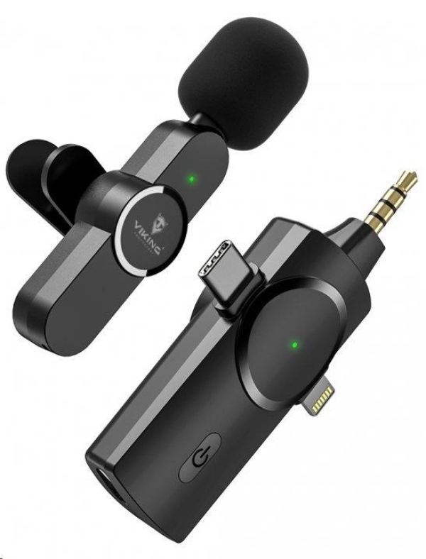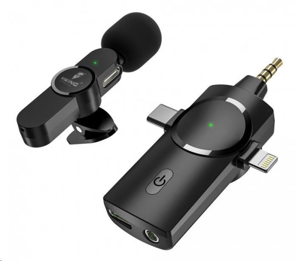 Bezdrátový ''Clip-on'' mikrofon VIKING M360/3in1 Malý, výkonný bezdrátový mikrofon VIKING M360/3in1 je vhodný pro pořízen audio/video záznamu ve vysoké kvalitě. Dlouhá výdrž baterie, vysoká citlivost mikrofonu a žádné zbytečné kabely, to jsou hlavní přednosti, které vám umožní snadné a pohodlné pořízení zvukového záznamu. Velkou výhodou mikrofonu VIKING M360/3in1 je baterie s výdrží až 7 hodin, která Vám zajistí dostatečný čas na pořízení kvalitního audio/video záznamu. Díky podpoře operačního sytému Android a iOS, Vám bude tento mikrofon VIKING M360/3in1 spolehlivě sloužit. Další výhodou je funkce Plug and Play, velice snadné propojení, které zvládne úplně každý. K propojení mikrofonu VIKING M360/3in1 nepotřebujete instalovat žádnou další aplikaci. Stačí pouze připojit přijímací modem mikrofonu, který se spáruje s mikrofonem a můžete začít nahrávat. Dosah min. 100 metrů na otevřeném prostoru a až 20m v uzavřeném prostoru, Vám umožní volný pohyb s mikrofonem bez jakéhokoliv omezení při Vašem nahrávání. Další výhody mikrofonu VIKING M360/3in1: Doba do plného nabití pouze 80 minut Senzitivita mikrofonu -26dB Rozsah frekvence 20Hz-20kHz Výdrž mikrofonu až 7 hodin Jednoduché přichycení pomocí spony Dosah minimálně 100m na v otevřeném prostoru Dosah až 20m v uzavřeném prostoru Technické specifikace: Kapacita baterie: 70mAh Doba nabíjení: 80 min. Frekvence: 2,4GHz Frekvenční rozsah: 20Hz-20kHz Mikrofon: duální, digitální Citlivost mikrofonu: -26dB Vstup: DC Jack 3,5mm, 4,8-5,4V Vzdálenost přenosu: min. 100m otevřený prostor, až 20m uzavřený prostor Pracovní doba: 7h SNR (Signal to Noise Ratio): 64dB Nabíjecí vstup: USB-C Zpoždění: 15ms