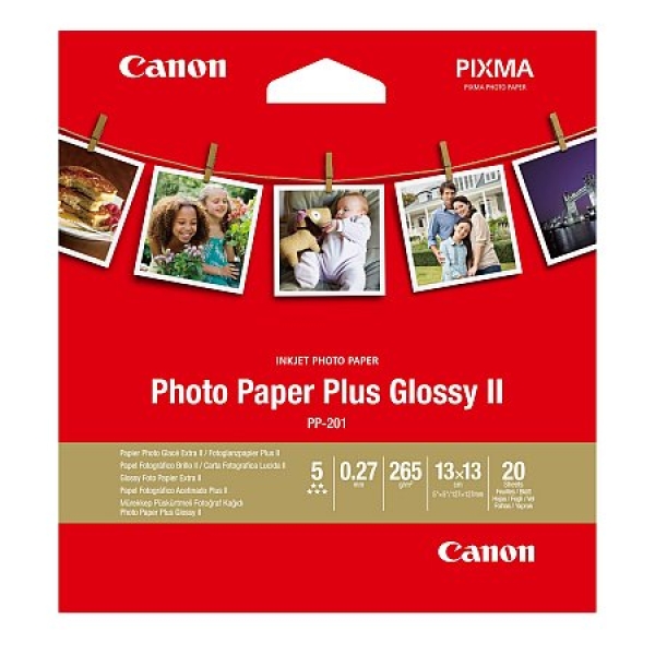 Canon Photo Paper Plus Glossy II, foto papír, lesklý, bílý, 13x13cm, 5x5", 265 g/m2, 20 ks, 2311B060, inkoustový