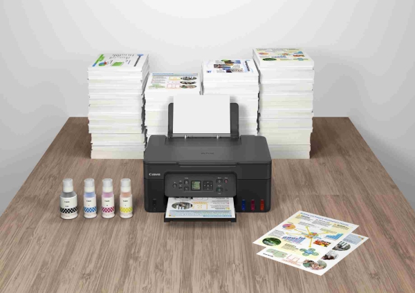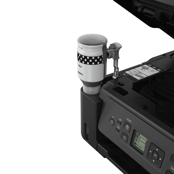 Co je v krabici: Inkoustová tiskárna MegaTank řady PIXMA G3470, 4 inkoustové lahve s vysokou výtěžností (1× černá a 1× C/M/Y), napájecí kabel, příručky a další dokumenty