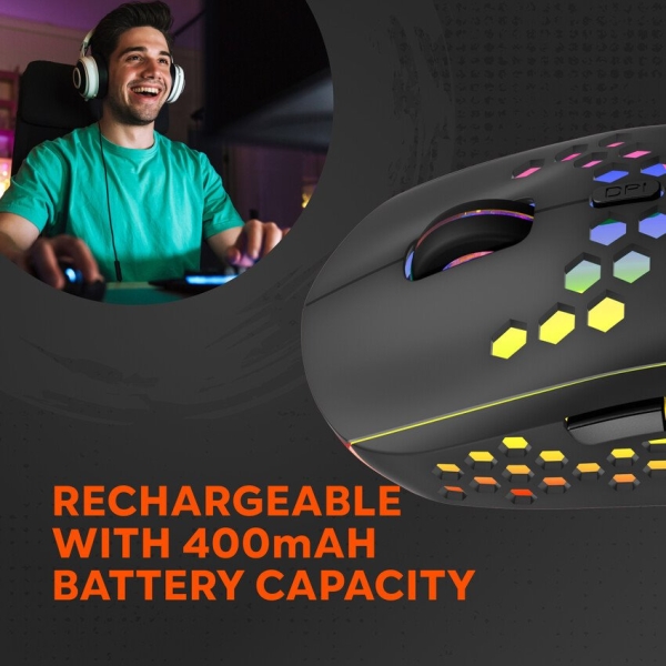 Lehká konstrukce s honeycomb designem zajišťuje proudění vzduchu a pohodlí i při dlouhých herních maratonech. RGB podsvícení dodá tvému setupu styl a atmosféru.