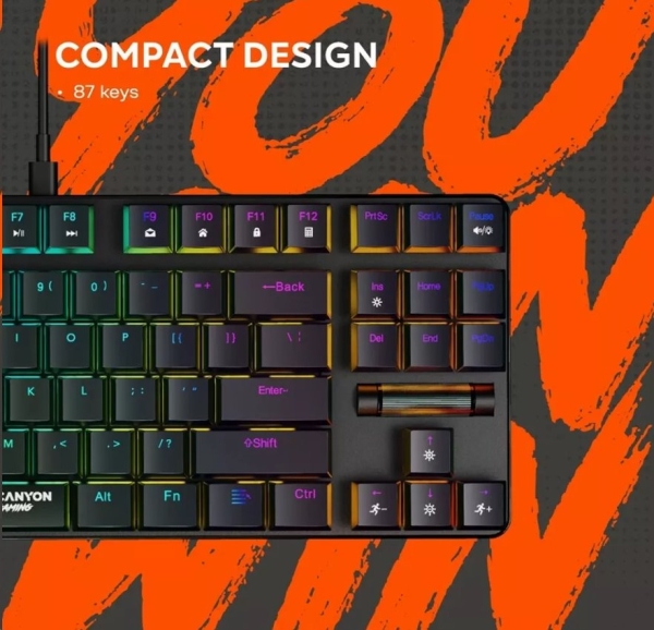 CANYON Herní klávesnice Cometstrike TLK GK-50, mechanická, drátová, multimediální, podsvícená, 87 kláves, CS layout