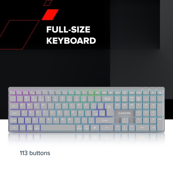 Canyon HKB-W11 – Bezdrátová klávesnice s RGB podsvícením a duálním připojením