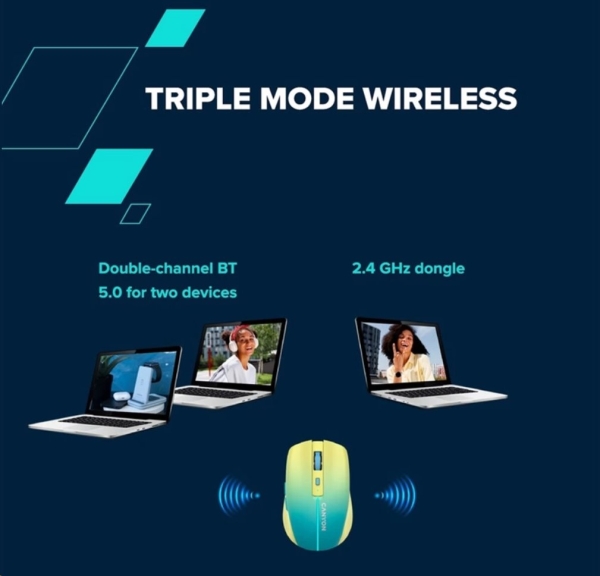 Canyon MW-44 má trojitý bezdrátový režim s klasickým 2,4 GHz a dvoukanálovým Bluetooth 5.0. Pomocí druhého z nich můžete plynule přepínat mezi dvěma připojenými zařízeními.