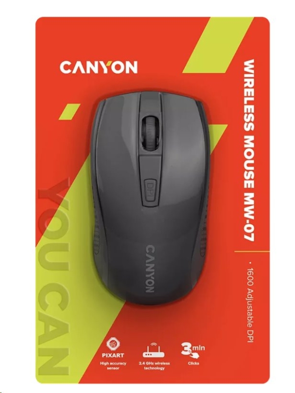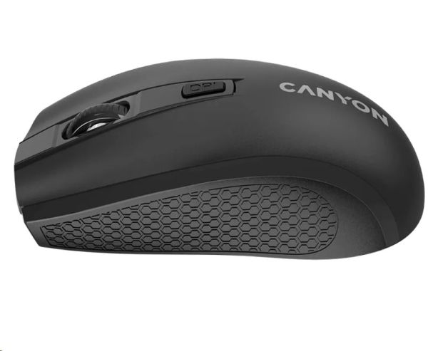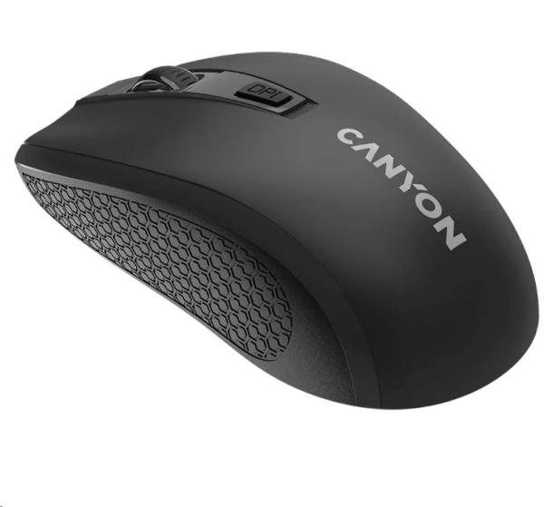 CANYON myš optická bezdrátová MW-7, nastavitelné rozlišení 800/1200/1600 dpi, 4 tl, USB dongle, 1xAA, černá