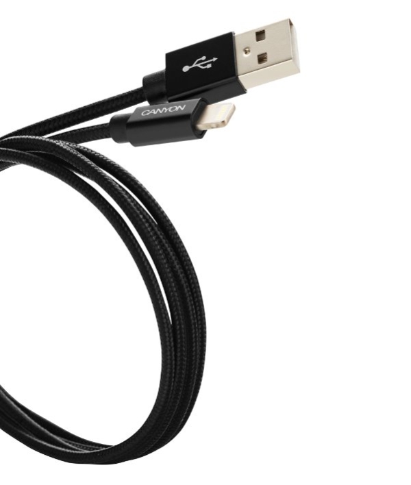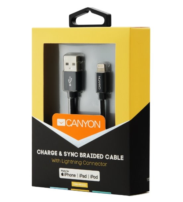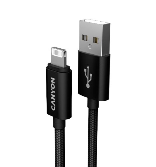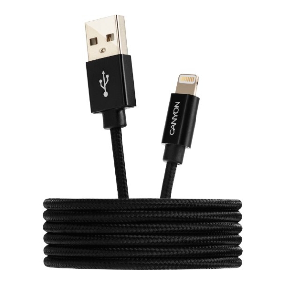 CANYON nabíjecí kabel Lightning MFI-3, opletený, Apple certifikát, délka 1m, černá