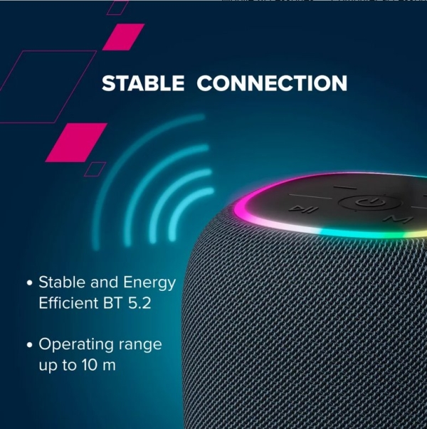 Jmenovitých 10 wattů v cestovním zpracování. Zaoblené tvary, kompaktní velikost a úhledné malé očko z něj dělají dokonalého společníka na výlet nebo na venkovní párty s přáteli!