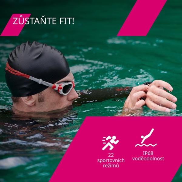 Tyto chytré hodinky jsou skvělou kombinací pro sportovce! Disponují 22 sportovními režimy od běhu a chůze až po jógu a baseball. Vyberte si z široké nabídky sportovních aktivit svou oblíbenou. Pokud jste vášnivým plavcem, hodinky jsou chráněny standardem IP68. Dokážou monitorovat váš srdeční tep, spánek a připomínat pitný režim. Pohodlné nošení zaručuje řemínek z hypoalergenního silikonu. Hodinky si můžete ve velké míře přizpůsobit svým potřebám od přijímání notifikací až po ovládání přehrávaných médií. To vše bez nepříjemného nabíjení každou noc - model SW-68 vydrží v aktivním režimu až 6 dní. Záleží nám na vašem soukromí — chytré hodinky Canyon dodržují normu GDPR a chrání vaše osobní údaje.
