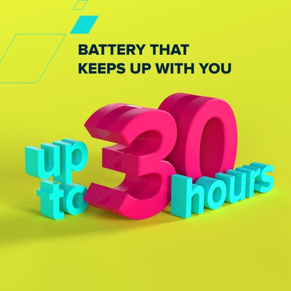 Stylové nabíjecí pouzdro poskytuje několik plných dobití navíc, takže celková výdrž sluchátek vystačí na celý den poslechu. Pouzdro je kompaktní a snadno přenosné.