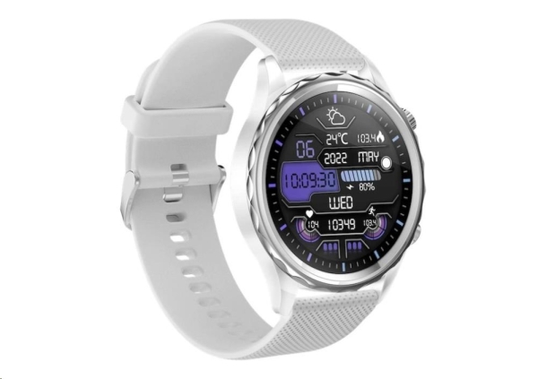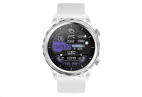 Chytré hodinky Carneo Queen HR+ silver Moderní nadčasové fitness hodinky CARNEO Queen HR+ v bílém provedení se stříbrnou korunkou a bílou, na dotek velmi příjemnou barvou, silikonovým řemínkem a SUPER AMOLED displejem s vysokým jasem a funkcí trvalého zobrazení času monitorují vaši denní aktivitu, úroveň stresu, ale lze je spárovat s mobilním telefonem a upozornit vás na příchozí hovor nebo SMS. Hodinky umožňují telefonovat, aniž byste museli telefon vyndat z tašky, díky vestavěnému mikrofonu a reproduktoru až do vzdálenosti 10 m od telefonu. Jejich bezchybné kovové tělo s nadčasovými outdoorovými křivkami je tak návykové, že je po prvním nošení nebudete chtít sundat ze zápěstí. Mimořádně odolné minerální sklo chrání křišťálově čistou obrazovku před poškrábáním. Operační systém: iOS a Android. Displej - úhlopříčka [palce]: 1,43'' dotykový HD AMOLED Displej - rozlišení [pix]: 466 x 466 Materiál řemínku: Silikonový náramek Materiál hodinek: Kov Velikost hodinek: 44 mm Tloušťka hodinek: 11 mm Šířka řemínku: 22 mm Konektivita: Verze Bluetooth: V 5.2, audio V 3.0 Voděodolnost: IP 67 Měřené veličiny: *Krokoměr: ano *Měření vzdálenosti: ano *Měření krevního tlaku: ano *Měření okysličení krve: ano *Měření spálených kalorií: ano *Kardio index: ano *Ůroveň stresu: ano *Výpočet BMI: ano *Monitor Spánku: ano *Energie těla: ano *Aplikace: Carneo FIT v českém jazyce *Přehrávání hudby: Ovládání hudebního přehrávače v mobilním telefonu Baterie: *Životnost baterie: 5 dní *Kapacita [mAh]: 380 mAh Hmotnost [g]: 38 g Obsah balení: *1 x Chytré hodinky CARNEO Queen HR+ *1 x Magnetický napájecí kabel *1 x Uživatelská příručka Záruka: 24 měs.