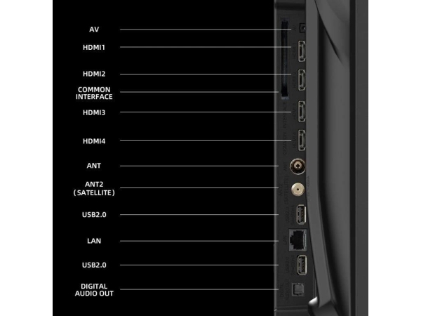 | Vstupy a výstupy: | AV vstup mini, CI+, digitální audio výstup, HDMI 2.1, USB 2.0, LAN, antény RF a LNB |