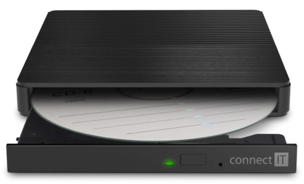Pokud vlastníte notebook, ultrabook či netbook, je toto malé zařízení přesně to, co potřebujete. Můžete ho používat pro instalaci softwaru nebo k vytváření záloh. Externí CD/DVD SlimDrive vypalovačka CONNECT IT je napájena pomocí USB-C / USB-A portu, takže nepotřebujete žádný napájecí adaptér. Je jen o něco větší než DVD a snadno se vejde do kapsy batohu či brašny, můžete ji tedy vždy nosit s sebou.