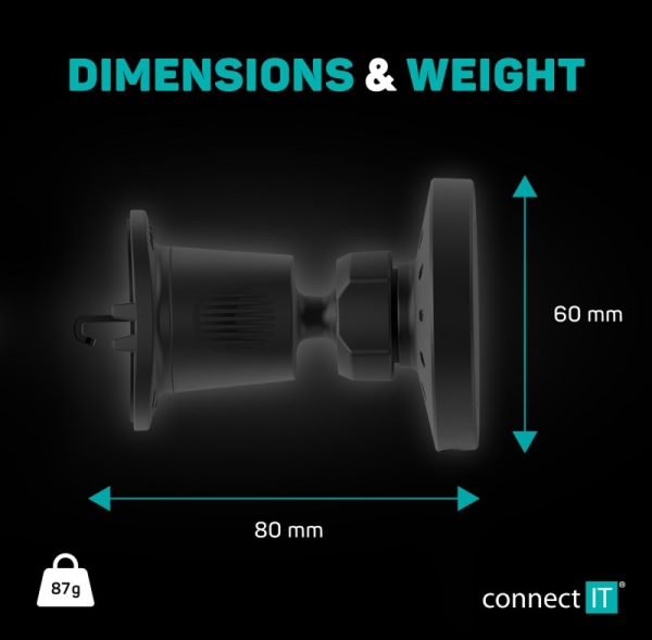 CONNECT IT InCarz MagSafe univerzální magnetická bezdrátová nabíječka do auta, černá