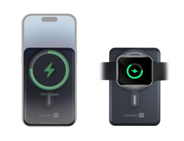 Bezdrátová MagSafe powerbanka s kapacitou 10000 mAh kompatibilní s Apple iPhone a Apple Watch. Disponuje integrovaným USB-C a Lightning kabelem. Podporuje až 20 W rychlonabíjení pomocí USB-C kabelu.