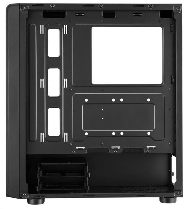 Odnímateľná klietka HDD - Modulárny rám umožňuje staviteľom úplne odstrániť klietku disku, čo poskytuje väčšiu voľnosť pri stavbe a väčšiu kompatibilitu pre dlhé napájacie zdroje.