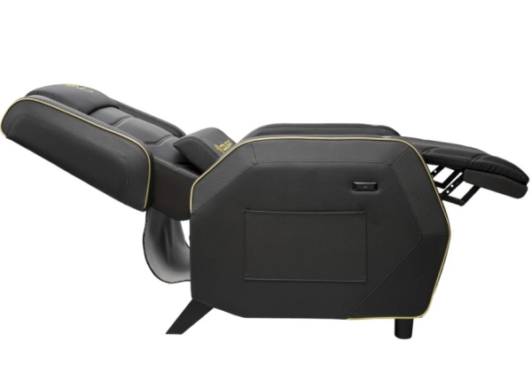 Obsahuje sklopnou opěrku nohou a nakloněnou opěrku zad, aby vám poskytlo pohodlí, které potřebujete pro dlouhé hraní.