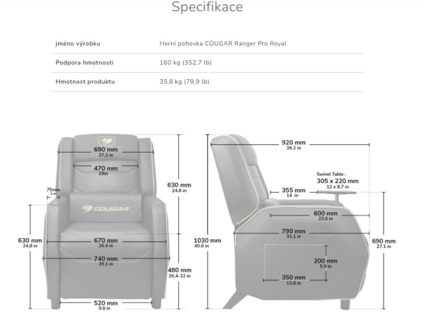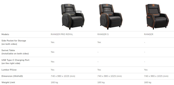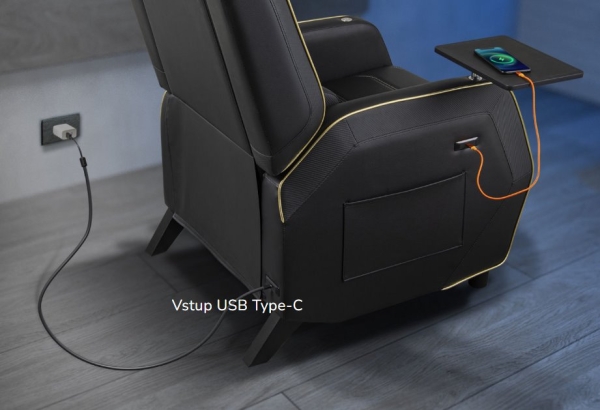 COUGAR herní křeslo RANGER PRO ROYAL - černá/zlatá, USB-C, otočný stolek, boční kapsa