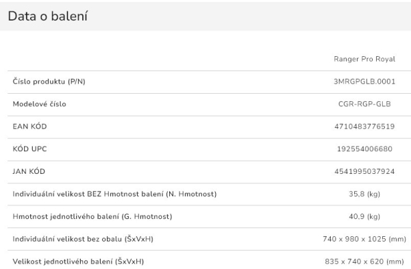 Hmotnost produktu 38,8 kg (78,9 lb)