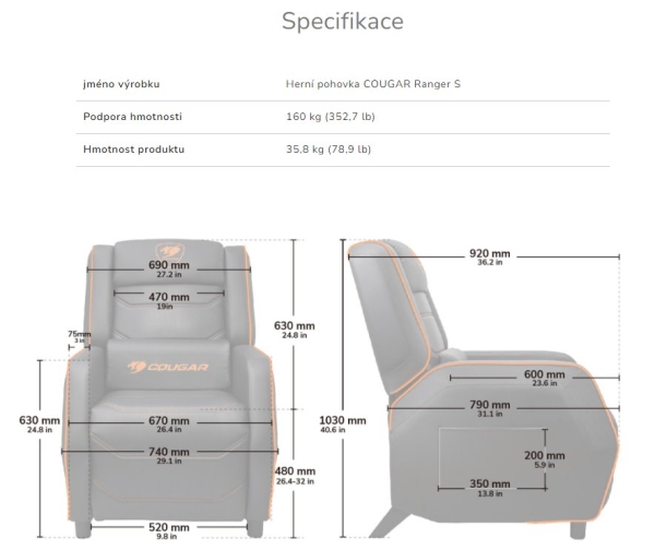 COUGAR herní křeslo RANGER S - černá, boční kapsa