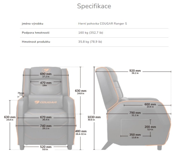 Nastavení vám nabízí možnosti sklonu opěradla a podpěry nohou do preferovaného lehu.