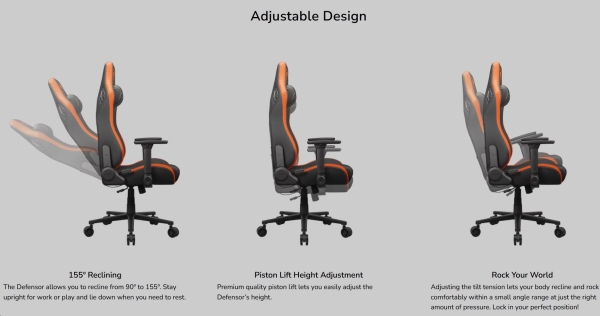 The Defensor allows you to recline from 90° to 155°. Stay upright for work or play and lie down when you need to rest.