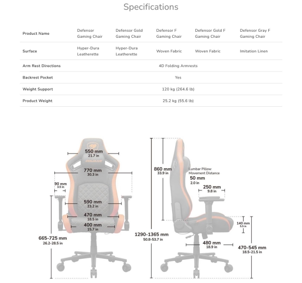 The Defensor guards the health of your back enabling you to game harder, for longer. Its integrated PushBack advanced lumbar support system lets you control just the right amount of pressure applied on your lower back, preserving the natural curve of your spine. The 4D folding armrests offer a choice between optimal arm support and unhindered movement; features such as high-density molding foam and a magnetic memory foam neck pillow prioritize your comfort.